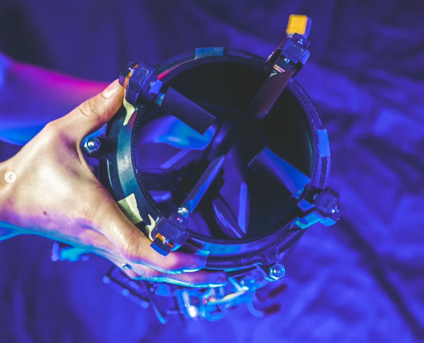 • PA12 + 15CF (obecnie) – przejście na nylon z włóknem węglowym przyniosło wyraźnie lepszą udarność i odporność temperaturową. Dzięki sprężystości PA12 + 15CF komora pochłania energię przy lądowaniu i zachowuje integralność, co pozwala używać jej wielokrotnie w testach naziemnych i w locie.